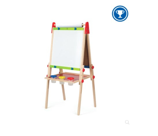 From Hape Intl - Adjustable-height, double-sided easel to inspire all young artists! For ages 3-7 yrs, from Hape Intl.