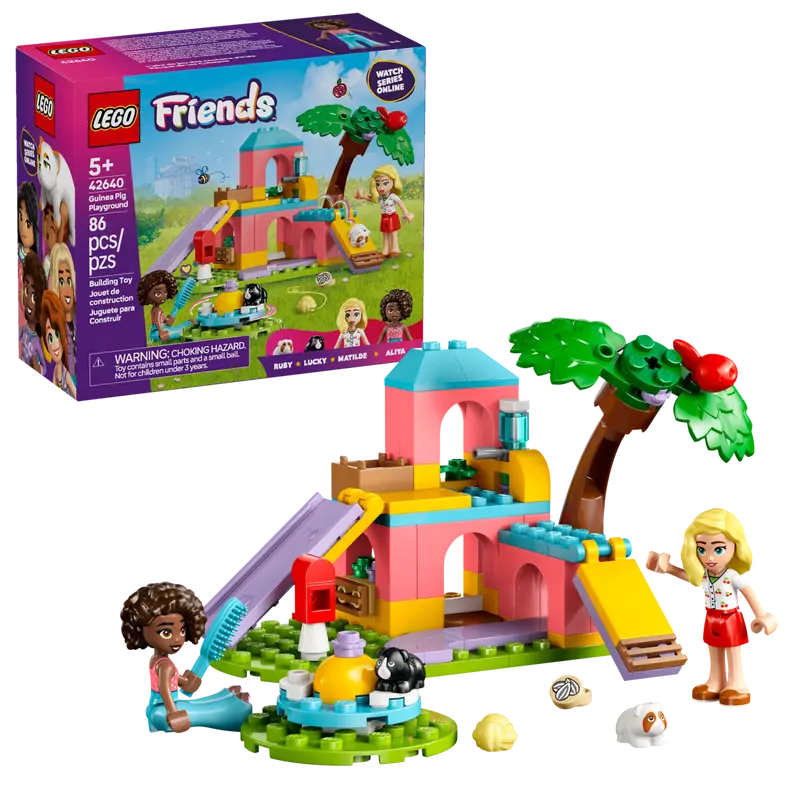 Here’s a pretend-play building kit for girls, boys and animal-lovers aged 5 and up who would love to create their own guinea pig adventures. The LEGO® Friends Guinea Pig Playground (42640) comes with 2 LEGO Friends minidolls and 2 guinea pig figures for hours of role-play fun.