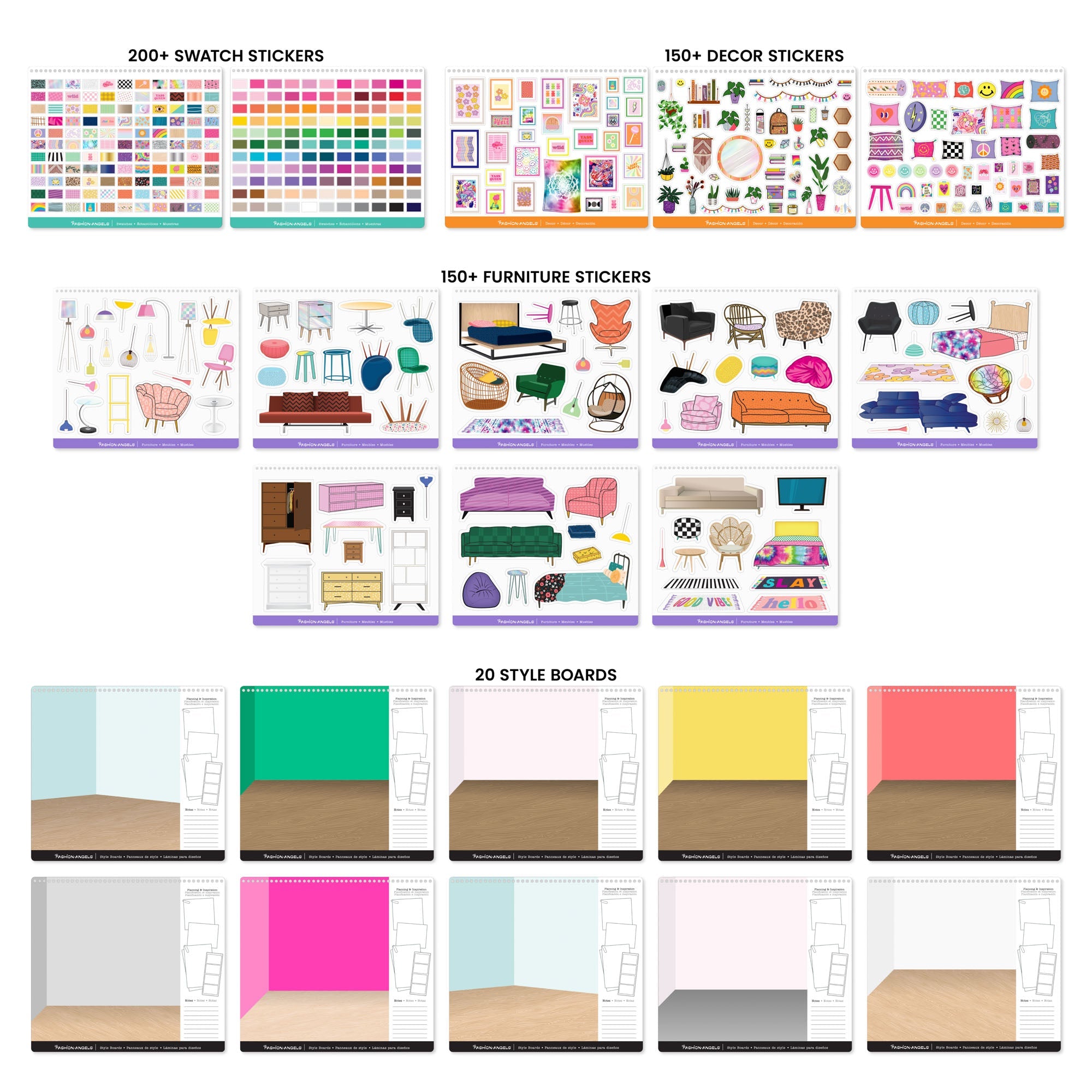 Dive into the world of interior design with the Interior Design Sticker Stylist Portfolio. This set boasts 20 style boards where kids can combine stickers to create and reimagine room spaces. From modern to vintage, classic to quirky, the design options are endless.