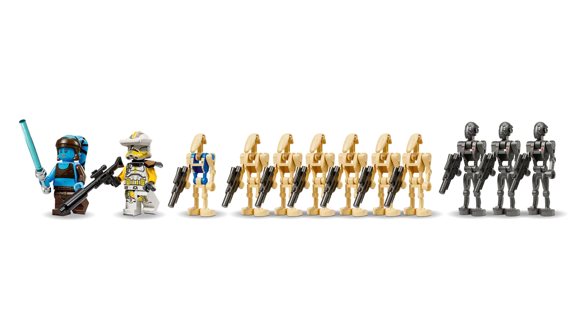 A cool Star Wars gift for kids, the set includes 2 LEGO® minifigures – Aayla Secura with a Lightsaber™ and Commander Bly with a blaster rifle – plus 3 Commando Droid and 6 Battle Droid LEGO figures, all with blasters, and a Pilot Battle Droid LEGO figure. Set contains 976 pieces.