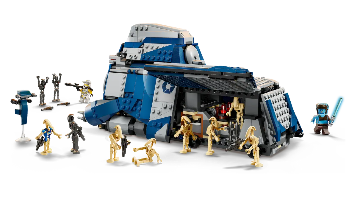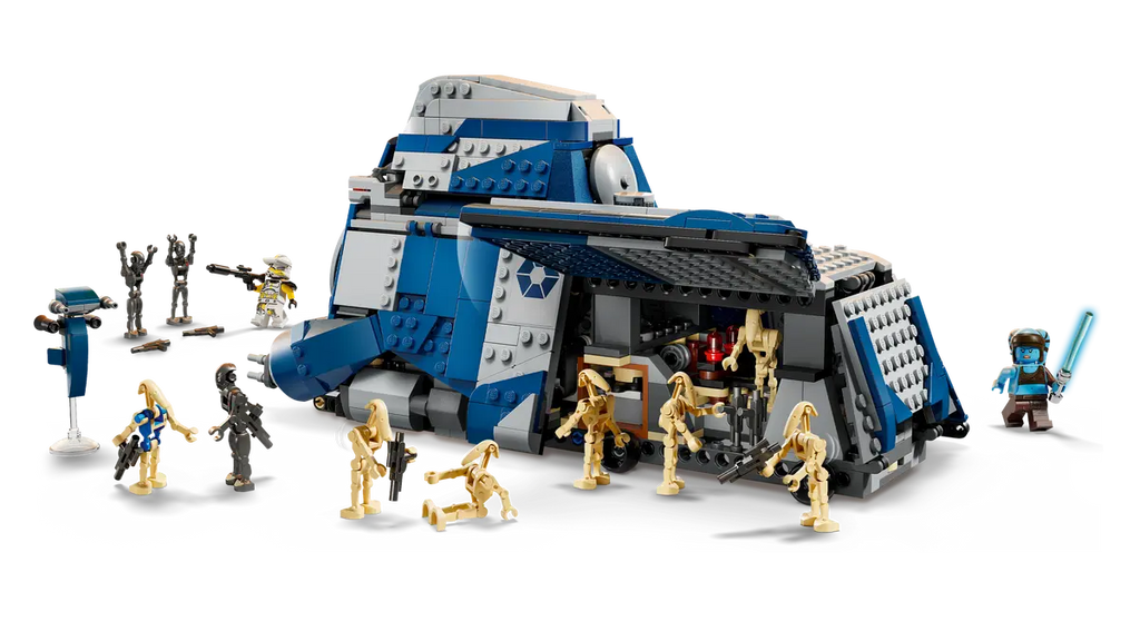 Relive action-packed Star Wars: The Clone Wars™ scenes from the Battle of Felucia with this Separatist MTT building toy (75435) for boys, girls and any fans aged 9 and up. This buildable Star Wars™ vehicle has lots of authentic details to inspire creative play, including a droid deployment rack that pushes out through the front hatch at the turn of a knob. The MTT also has fold-up side panels for easy access to the detailed interior, a pilot cockpit, a STAP speeder stowed in the rear compartment, 2 stud shooters and hidden wheels for smooth movement across flat surfaces. Display this awesome vehicle as fantasy decor between playtime adventures.
