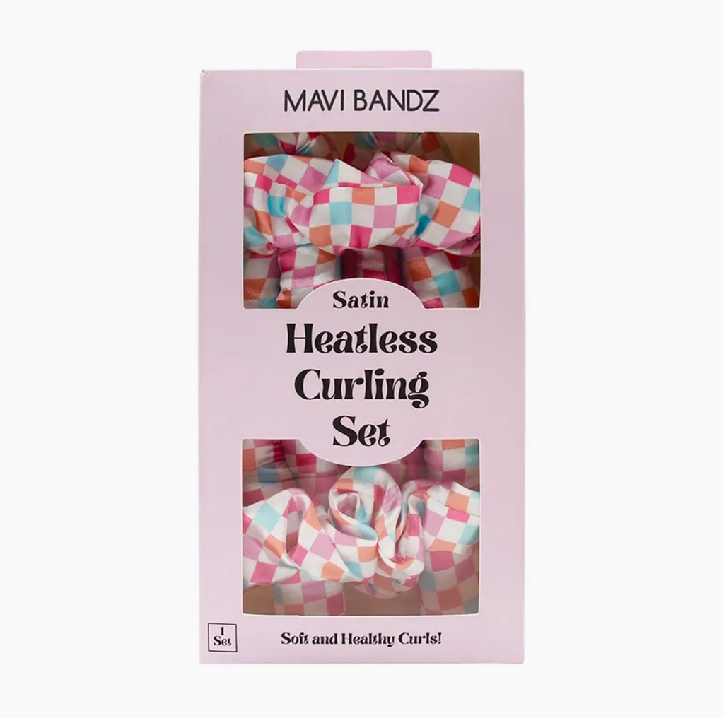 Check Satin Heatless Curling Curler Rod Set With Scrunchies