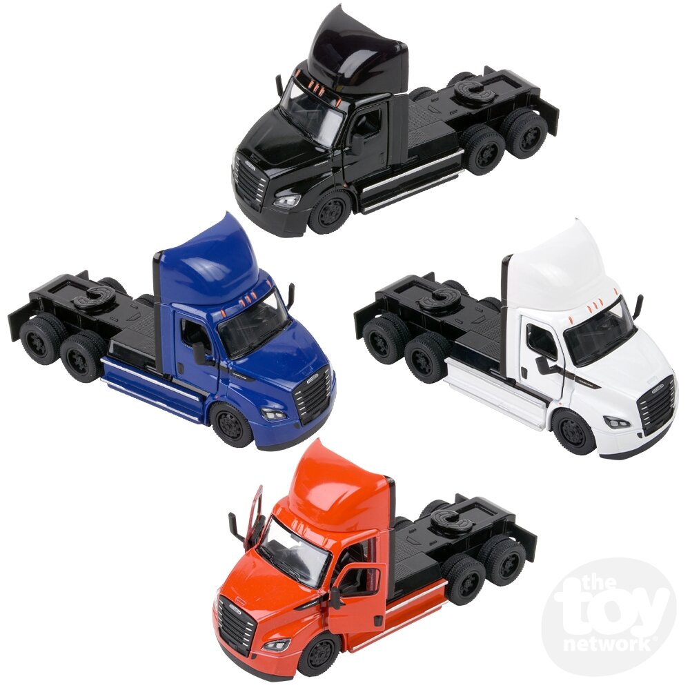These 5" Diecast Freightliner Ecascadia Truck features openable doors and a pull-back feature to move across hard surfaces.
