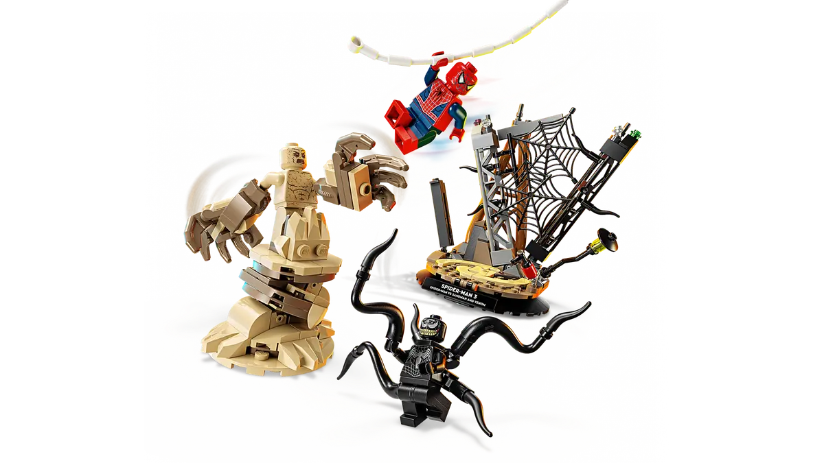 Bring Marvel Studios’ Spider-Man 3 movie to life with the LEGO® ǀ Marvel Epic Battle: Spider-Man vs. Sandman (76334) building set for kids, boys and girls ages 9 and up. It features 3 iconic minifigures – Spider-Man, Venom and Sandman – in epic role-play adventures and mega display possibilities. The buildable set comes with a stellar cast of characters from the movie and lots of interactive elements: Spider-Man swings down from a tower on a web rope; Sandman rises from the rubble with a supersized arm; and Venom strikes with 4 movable tentacles. Kids can display the LEGO model as room decor with the sturdy base and nameplate or detach the minifigures to create pretend play stories of their own. This set makes a great gift idea for the birthdays of young Super Heroes, LEGO builders and fans of Spider-Man merch. And, with the LEGO Builder app, kids can build with confidence – zoom, rotate in 3D and track progress with easy-to-follow digital instructions. Building set contains 201 pieces.