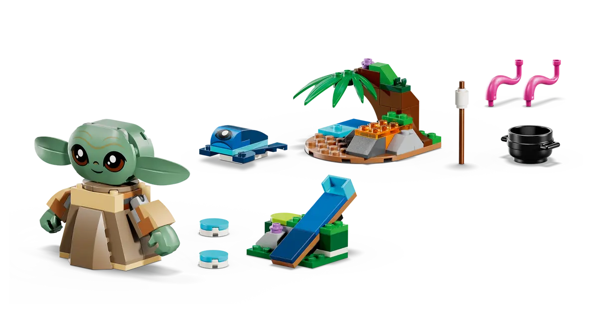 Give kids ages 4 plus an inspiring first build-and-play experience in the LEGO® Star Wars™ universe with this toy building set: Grogu’s Homestead (75443). A great small gift for preschool boys, girls and Star Wars fans, it features an easy-to-build, posable Grogu figure, a Sorgan frog, 2 mini builds plus authentic accessories. Send the Sorgan frog flying with the catapult. Recreate Star Wars: The Mandalorian™ scenes around the fireplace with a cooking pot, 2 tentacles, a marshmallow on a stick and 2 blue macaron accessories. One of the macarons can fit inside Grogu’s belly. The simple pictorial instructions in this set are ideal for children who are just learning to read. For added digital fun, the LEGO Builder app has zoom and rotate tools that let kids visualize the builds as they piece them together (perhaps with a little help from an adult or older sibling). Set contains 107 pieces.