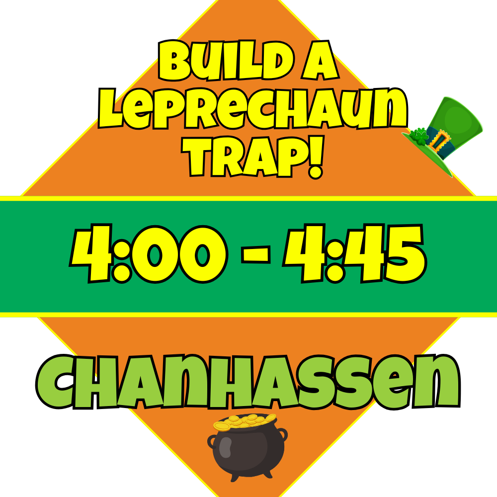 Caregivers and kids ages 4+ will team up as each child builds their own glittery leprechaun trap with cardboard boxes, crafty supplies, and a shiny gold coin—then takes home their creation, an Official Leprechaun Trap Builder certificate, and a fun photo-op moment filled with St. Patrick’s Day magic. 🍀✨