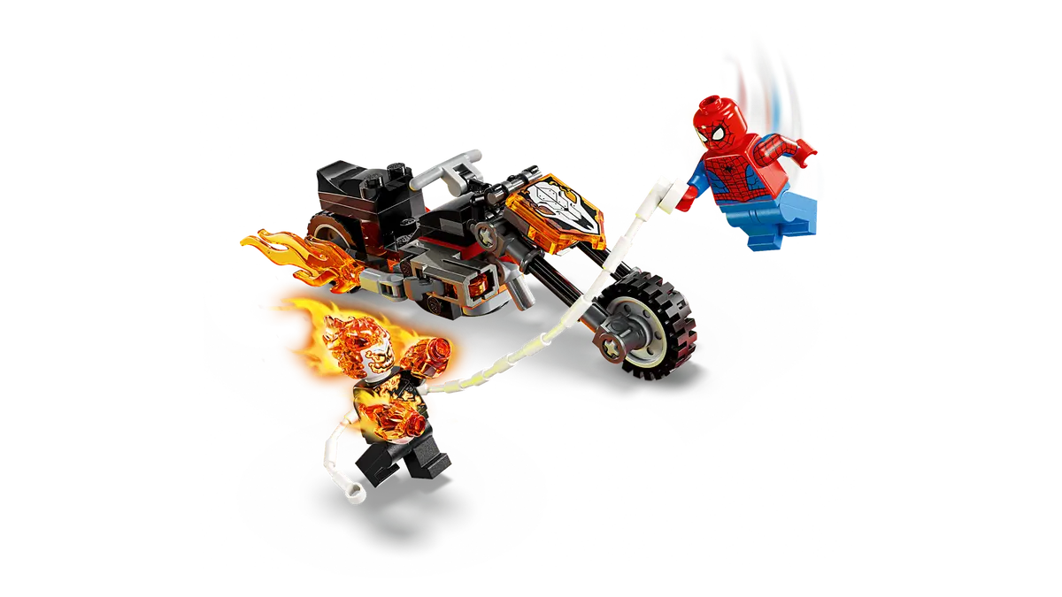 Kickstart high speed chase Super Hero action with this Spider-Man vs. Ghost Rider Motorcycle (76335) building toy for boys and girls ages 6 and up. The LEGO® ǀ Marvel building set’s battle-ready motorcycle and 2 dynamic Spider-Man and Ghost Rider minifigures fuel kids’ imaginative play. The Ghost Rider minifigure is depicted as a skeleton with flames streaming from his hands and head. His iconic motorcycle features 2 flaming tailpipes and 2 built-in stud shooters. The Spider-Man minifigure’s web-rope attaches to the motorcycle, offering endless role play possibilities as the characters battle on and off the high-octane vehicle. This building set makes a great gift idea for the birthdays of young Super Heroes, LEGO builders and fans of collectible Spider-Man merchandise. And, with the LEGO Builder app, kids can build with confidence – zoom, rotate in 3D and track progress with easy-to-follow digital instructions. Building set contains 72 pieces.