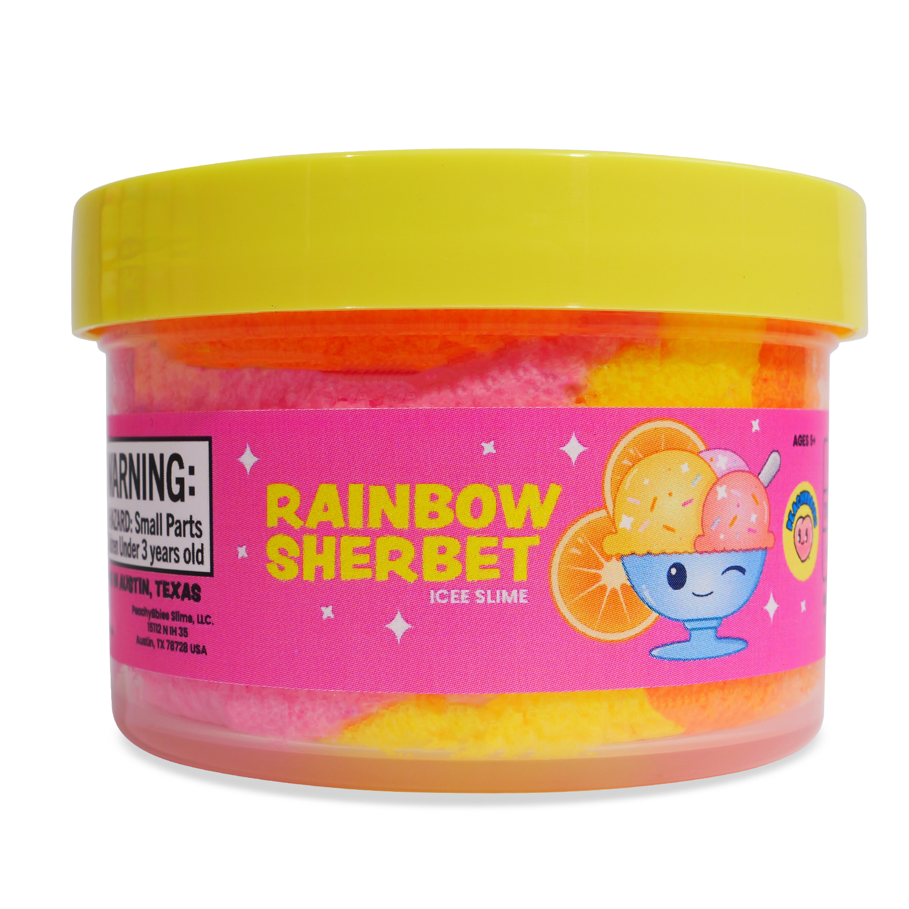 Cloud dough slime with a softy, doughy texture and rainbow sherbet scent. Complete with sherbet ice cream charms and mix-ins.