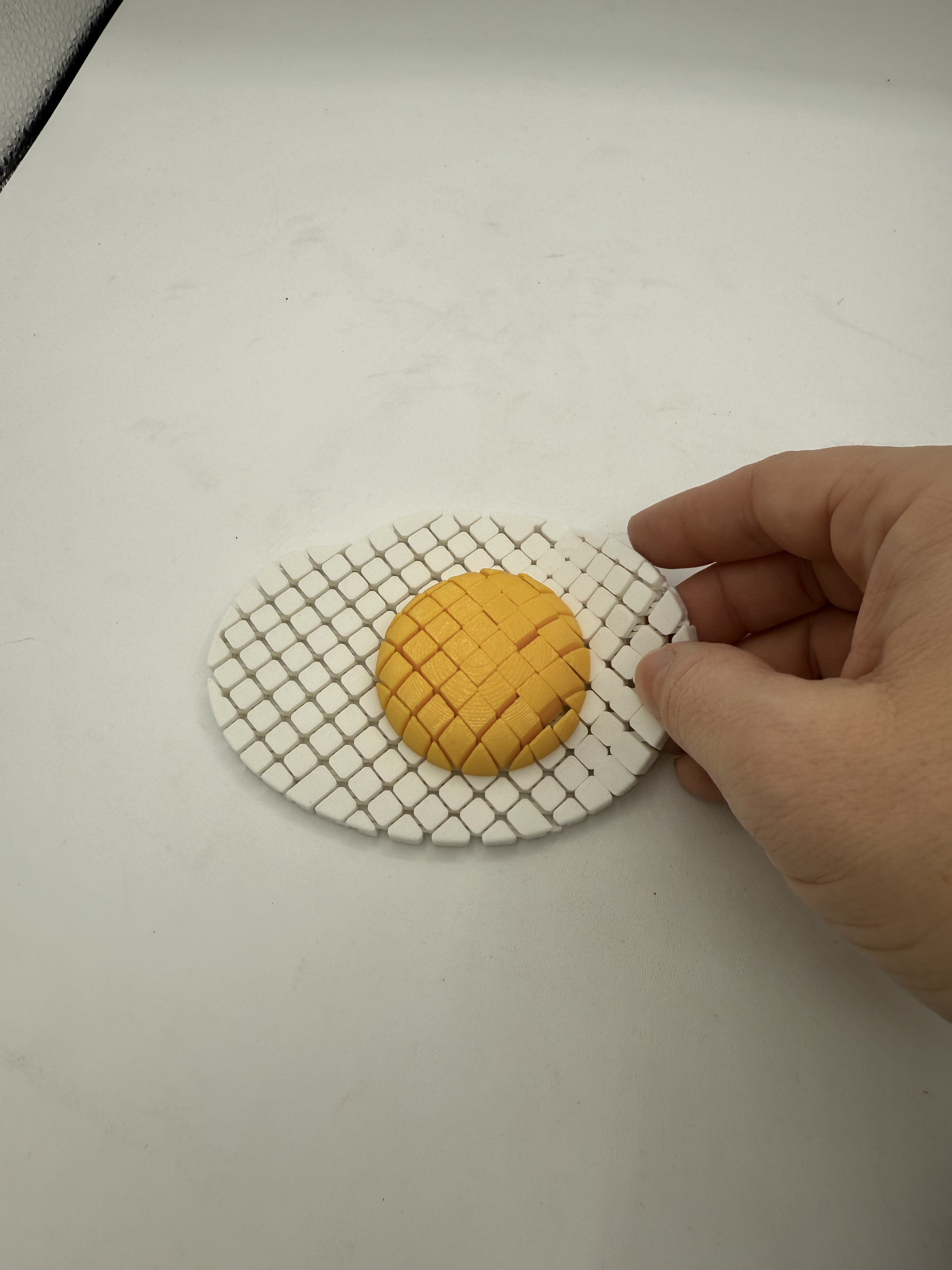 Using the latest, popular 3D linkage, the Floppy Fried Egg is a fun mesh toy in the lineup of Floppy Foods.