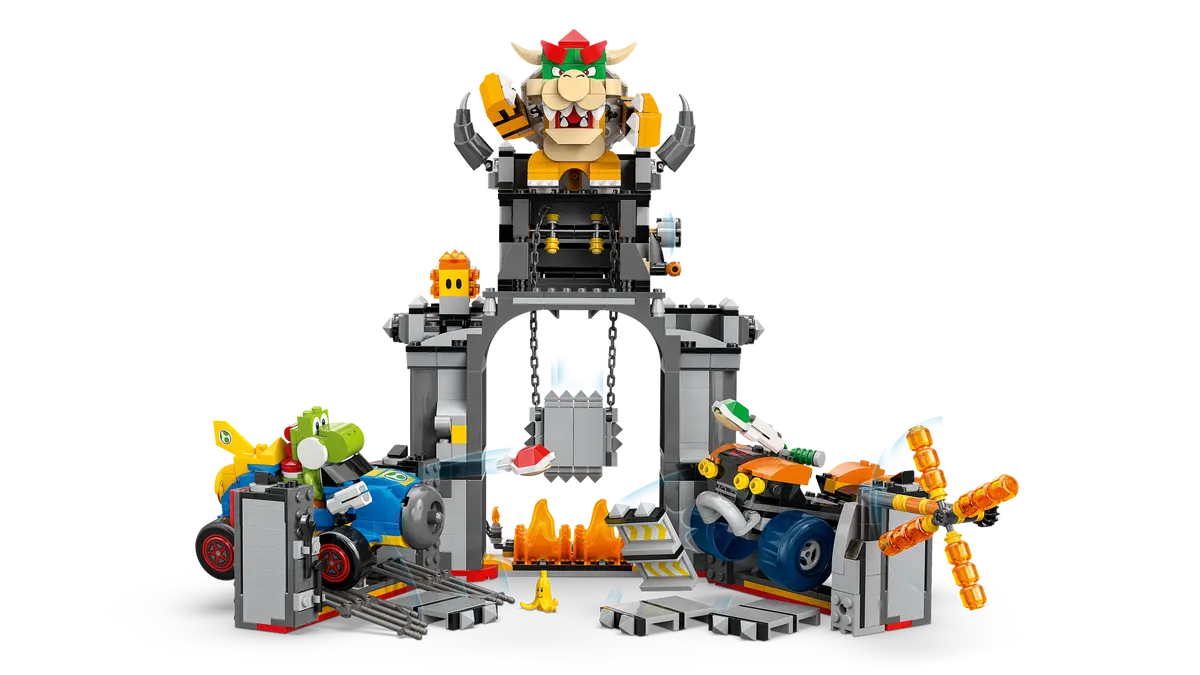 Get ready to race at Mario Kart™ – Bowser’s Castle with this LEGO® Super Mario™ toy vehicle racing set for kids (72039). A brilliant Nintendo® character gift toy for boys, girls and gamers aged 9 and up, the set features Bowser’s Castle, with space for Bowser to stand on top, foldout walls, a spinning Fire Bar and other fun functions. Drive, drift and launch shells with Bowser in the Standard ATV and Yoshi in the Mach 8 kart, smash through the castle walls, swerve away from the plunging Thwomp and topple the Lava Bubble.