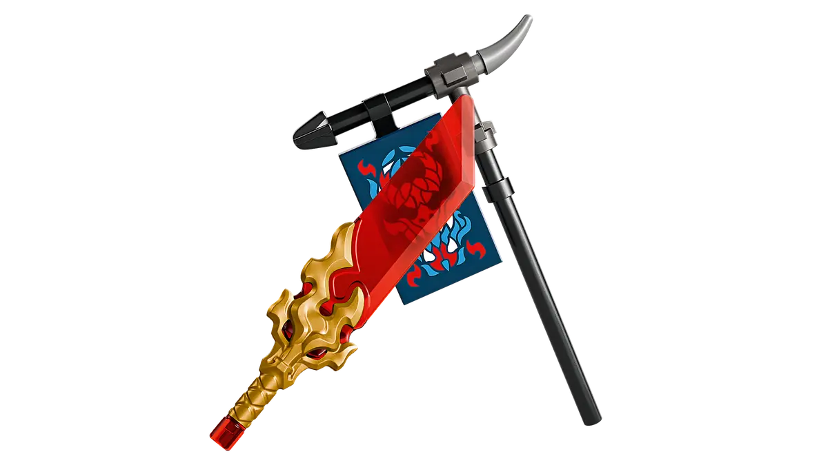 The mech toy has movable arms and legs, a chest that opens to place a minifigure inside and a sword, while the dragon figure has movable wings, head, jaw, legs and tail and a sword. There are 4 minifigures: ninja warriors Rogue and Arin, and the villainous duo of Rox and a Spectral Dragonian Warrior who have a banner with a secret message that can only be read using Arin’s reveal blade accessory.