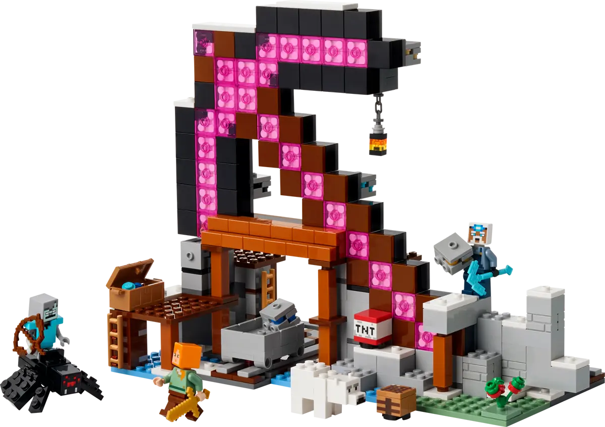 The set includes 3 minifigures: popular gaming character Alex, a Miner and a stray spider jockey. There’s also a baby polar bear figure at the mine’s surface. Kids extract Minecraft ore from the mine, load it into a minecart and transport it along the track to be stored in a chest. The cart can be filled with TNT and launched into the rock wall, blasting through the other side. And when the day’s mining adventures come to an end, the LEGO Minecraft pickaxe toy doubles as a striking display piece. For added digital fun, builders can zoom in, rotate models in 3D and track their progress using the intuitive LEGO Builder app. Contains 530 pieces.