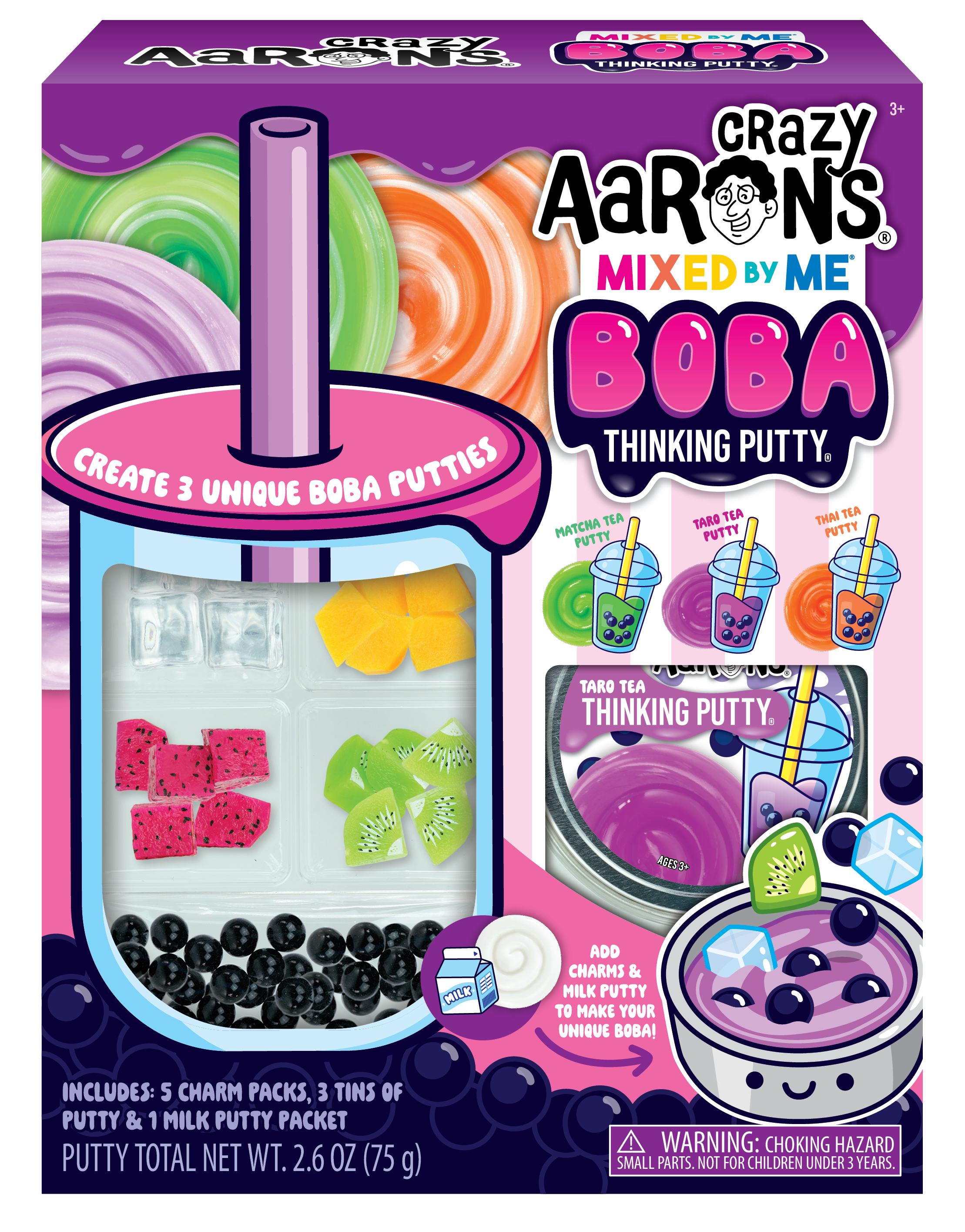 Who doesn’t love Boba Tea? Create your own Boba Tea putties with the Crazy Aaron’s® Mixed by Me® Boba Thinking Putty® Kit. With three different tea base options and five varieties of fruit-themed mix-ins, the Boba putty possibilities are endless!