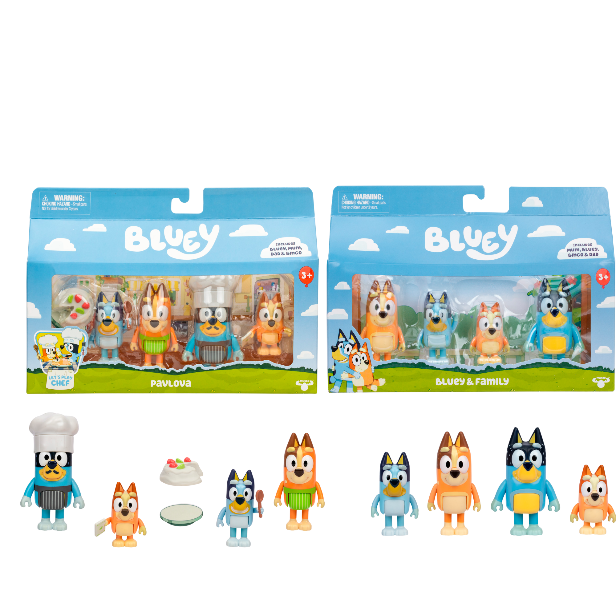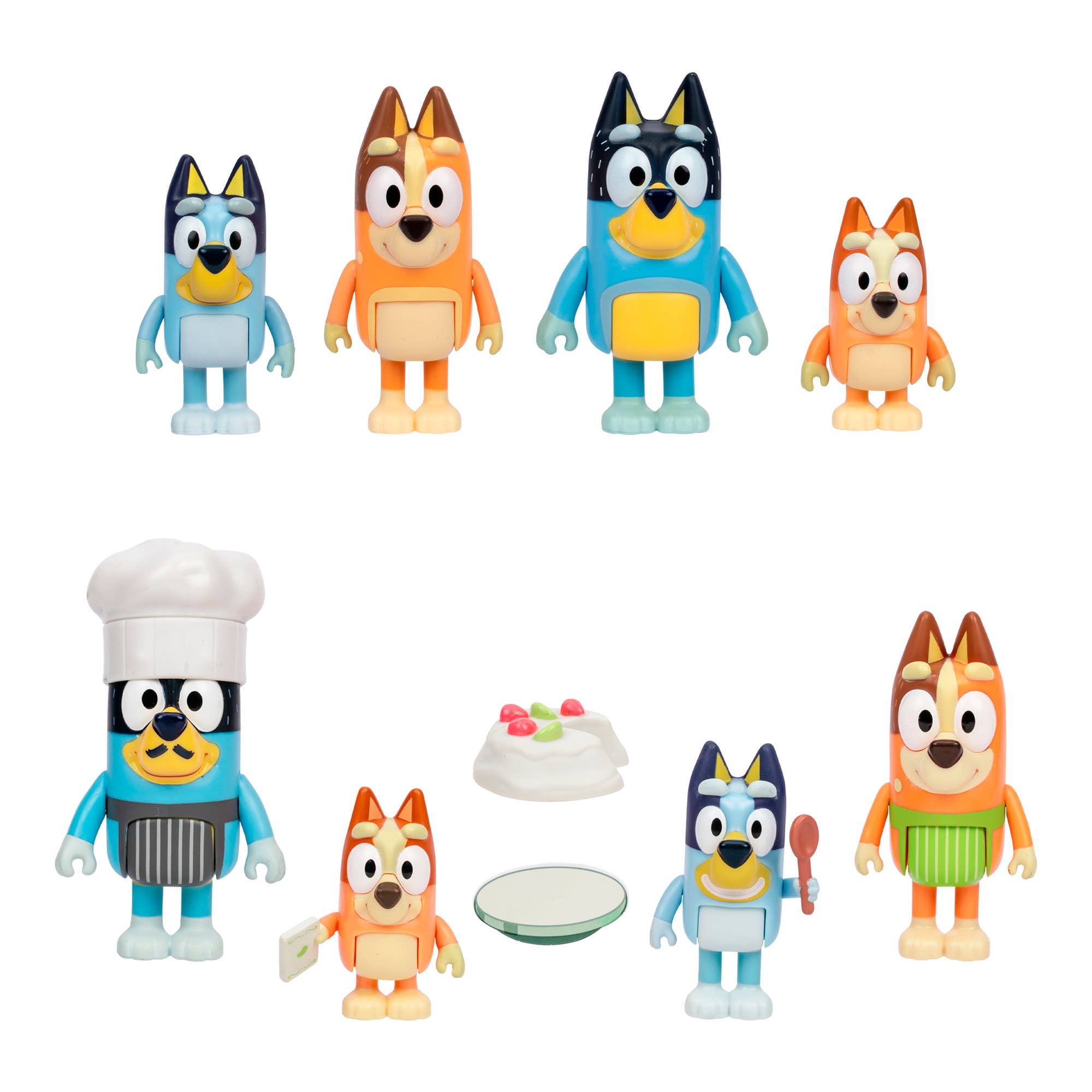 Bring home the entire Heeler family with the Bluey Family 4-Pack – a must-have for fans of the hit animated series! This adorable set includes Bandit, Chilli, Bluey, and Bingo, each styled for a relaxing day at home. Bandit and Chilli wear their signature hats, while Bluey and Bingo are wrapped in cozy towels, ready for imaginative play. These 2.5–3" figures are perfectly sized for preschool hands and feature articulated arms and torsos, making them ideal for posing, storytelling, and interactive fun. Designed to inspire creativity and role-play, each figure in the Heeler Family Pack can stand, sit, and move their arms for dynamic play. Kids will love recreating memorable scenes from the show or inventing brand-new adventures with their favorite characters. The detailed designs and expressive features capture the charm of the Bluey series, helping children connect with the characters and explore emotions, relationships, and everyday family life through play. With all four members.