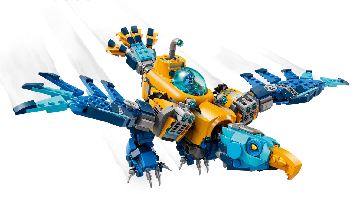 Kids unleash creativity with the LEGO® DREAMZzz™ Crocodile Submarine (71512) building set for boys and girls ages 8 and up. It offers 2 action-packed building options, letting dreamers build the submarine toy into a crocodile or flying eagle toy. The submarine has dual shooters and a hidden compartment, plus a cockpit that fits a minifigure. In crocodile mode it has a posable head, legs and tail, and in eagle mode, it has posable wings and wing feathers that extend from boosters. Logan, Zoey and Arika minifigures, plus a Grimspawn figure, 2 spiders and a collectible Blue Treasure Creature figure, encourage imaginative role play. Logan comes with a collectible blue sword, while Zoey has a bow and Arika has a scythe. A great gift for boys and girls, this set comes with story-led building instructions so kids can immerse themselves in the adventure. These are also available digitally in the LEGO Builder app, where builders can zoom, rotate and track progress. Set contains 1,107 pieces.
