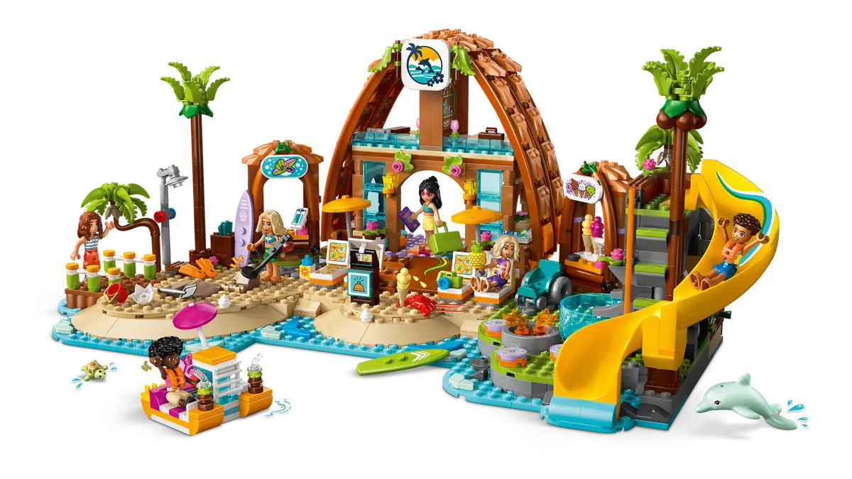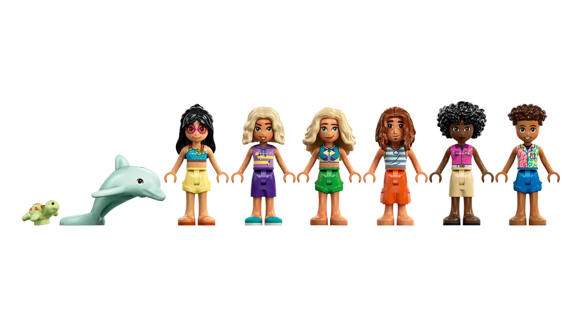 Enjoy family fun, vacation style with this action-packed kids’ building set toy for girls and boys aged 8 years old and up. The LEGO® Friends Family Vacation Beach Resort (42673) is full of stories and includes 6 LEGO Friends minidolls, a dolphin and a turtle figure, plus accessories for creative play.
