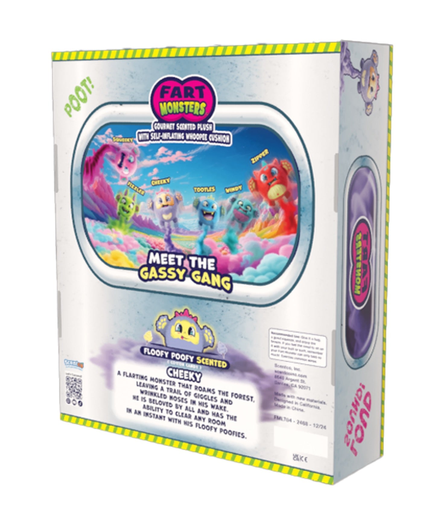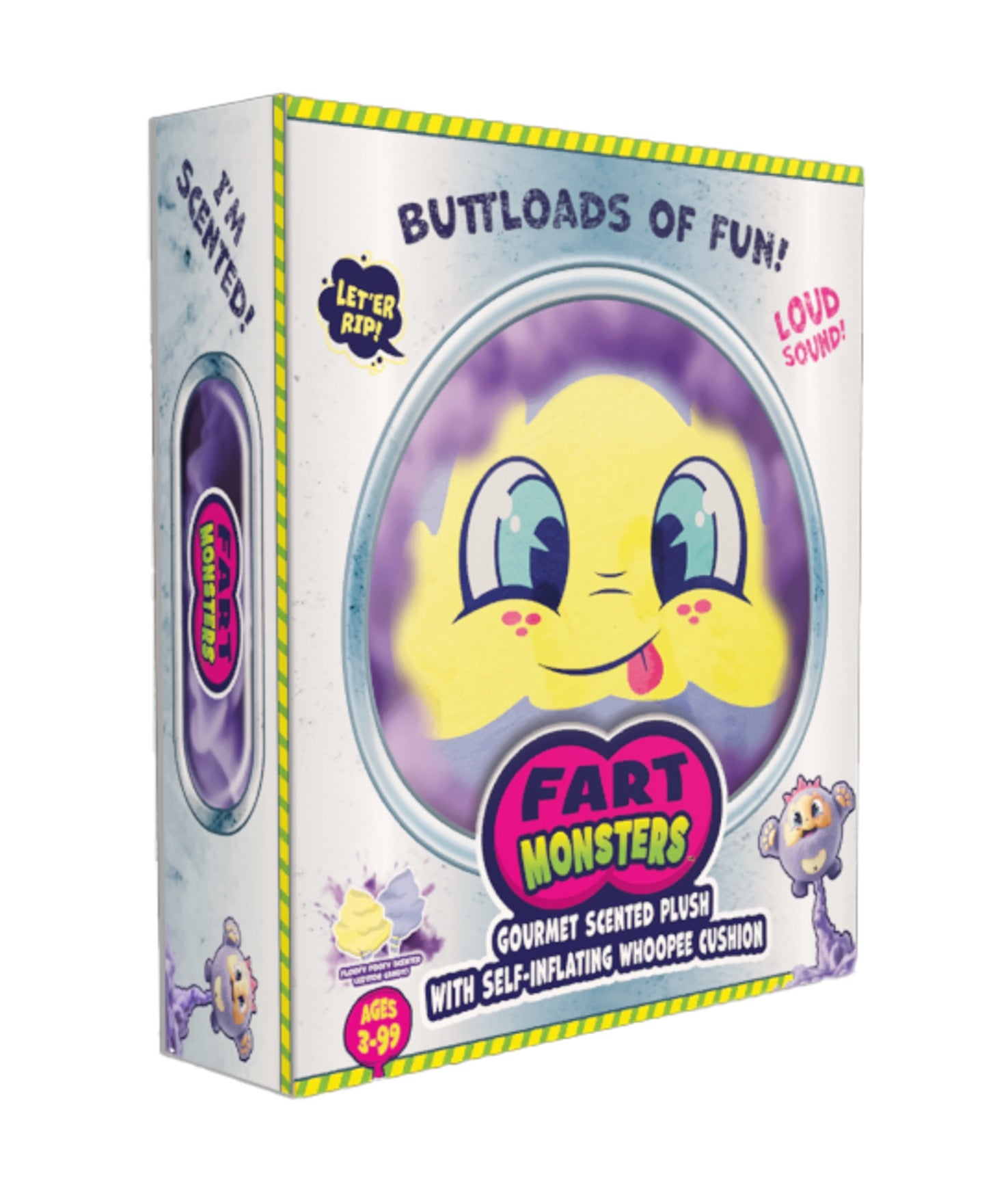 Introducing the world's first gourmet scented plush whoopee cushion toy characters! From Scentco for ages 3+ yrs.