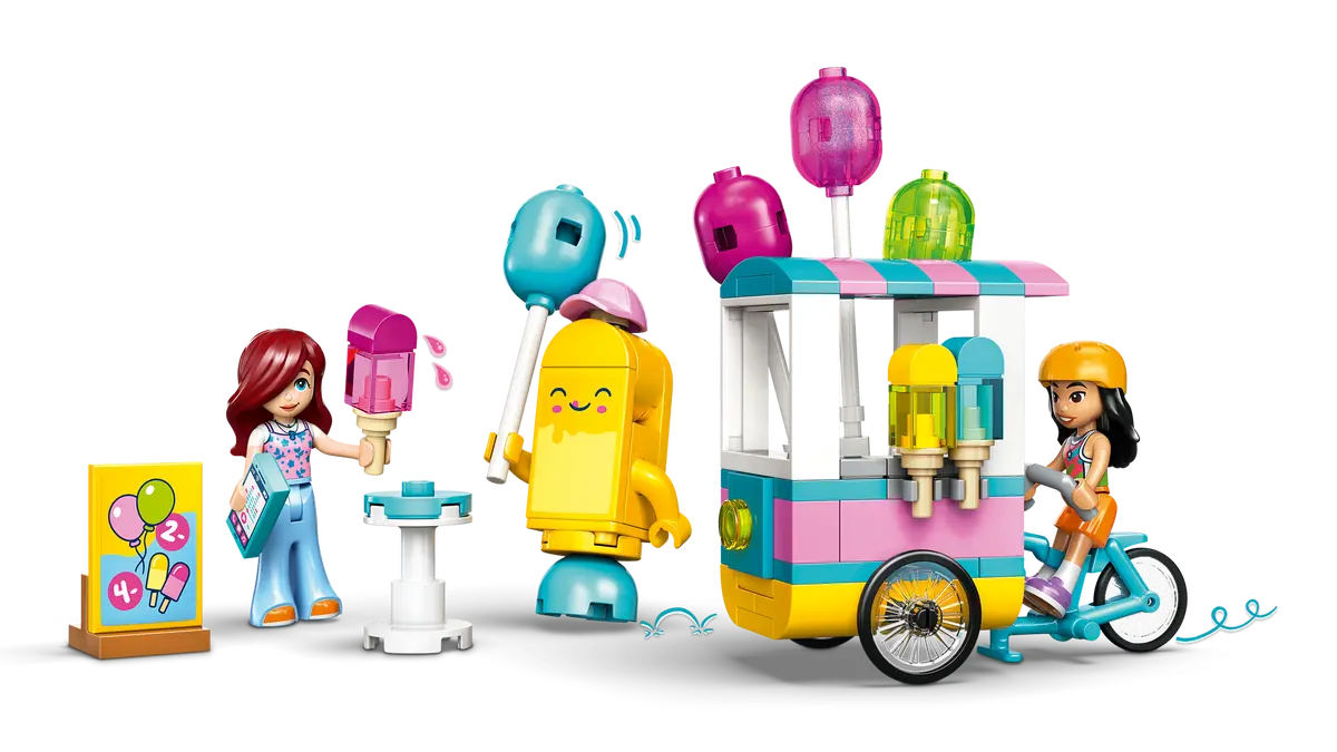 Girls and boys ages 6 and up can enjoy sweet adventures and creative playtimes with the LEGO® Friends Ice Cream & Balloon Stand (42692). The pretend play toy features fun details and cute accessories to fuel kids’ imaginations. Liann and Paisley minidolls help kids jump into the story as they set up the stand ready to sell balloons and ice pop treats. Liann comes with a helmet, ready to ride the bike that tows the food stand. Play continues with an adorable ice pop mascot, plus a menu, cash register and phone. There’s also a table where the friends hang out together. This kids’ role-play set makes a fun birthday gift for girls and boys who love pretend play. Enjoy intuitive building with the LEGO Builder app, zooming and rotating with 3D instructions, while saving and tracking progress – all from the app. Set contains 107 pieces.